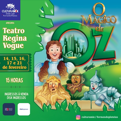 Com cenários grandiosos, trocas dinâmicas e muita magia no palco, O Mágico de Oz promete emocionar crianças e adultos de todas as idades!